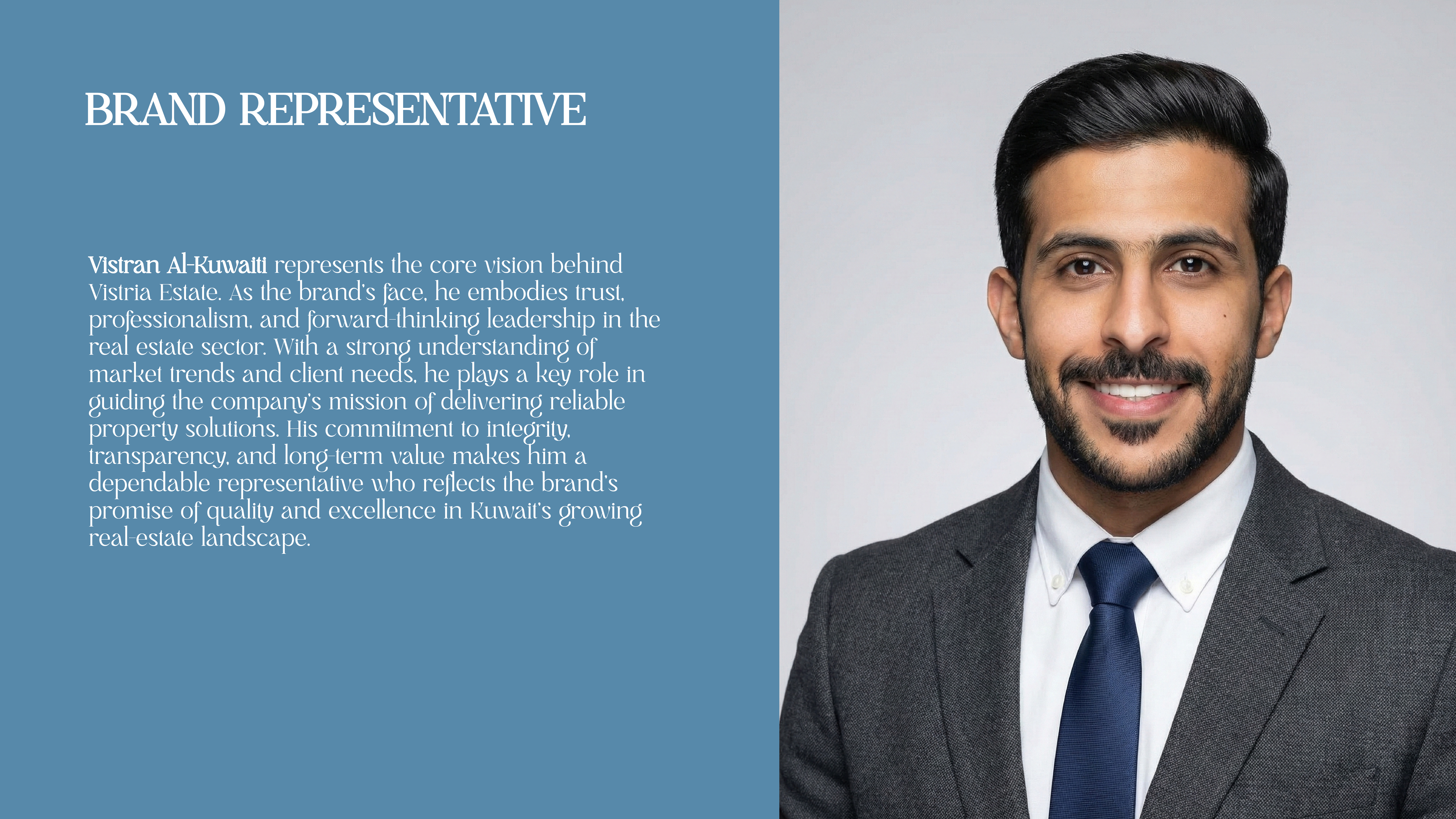 Vistria Estate is an emerging real estate startup in Kuwait aiming to establish a strong presence in the competitive Kuwaiti property market. However, their earlier brand identity did not reflect the premium, trustworthy, and high-value image needed to attract local investors and clients. To appeal to Kuwait’s sophisticated market, Vistria Estate required a refined and upscale branding approach—one that communicates luxury, reliability, and modern real estate expertise