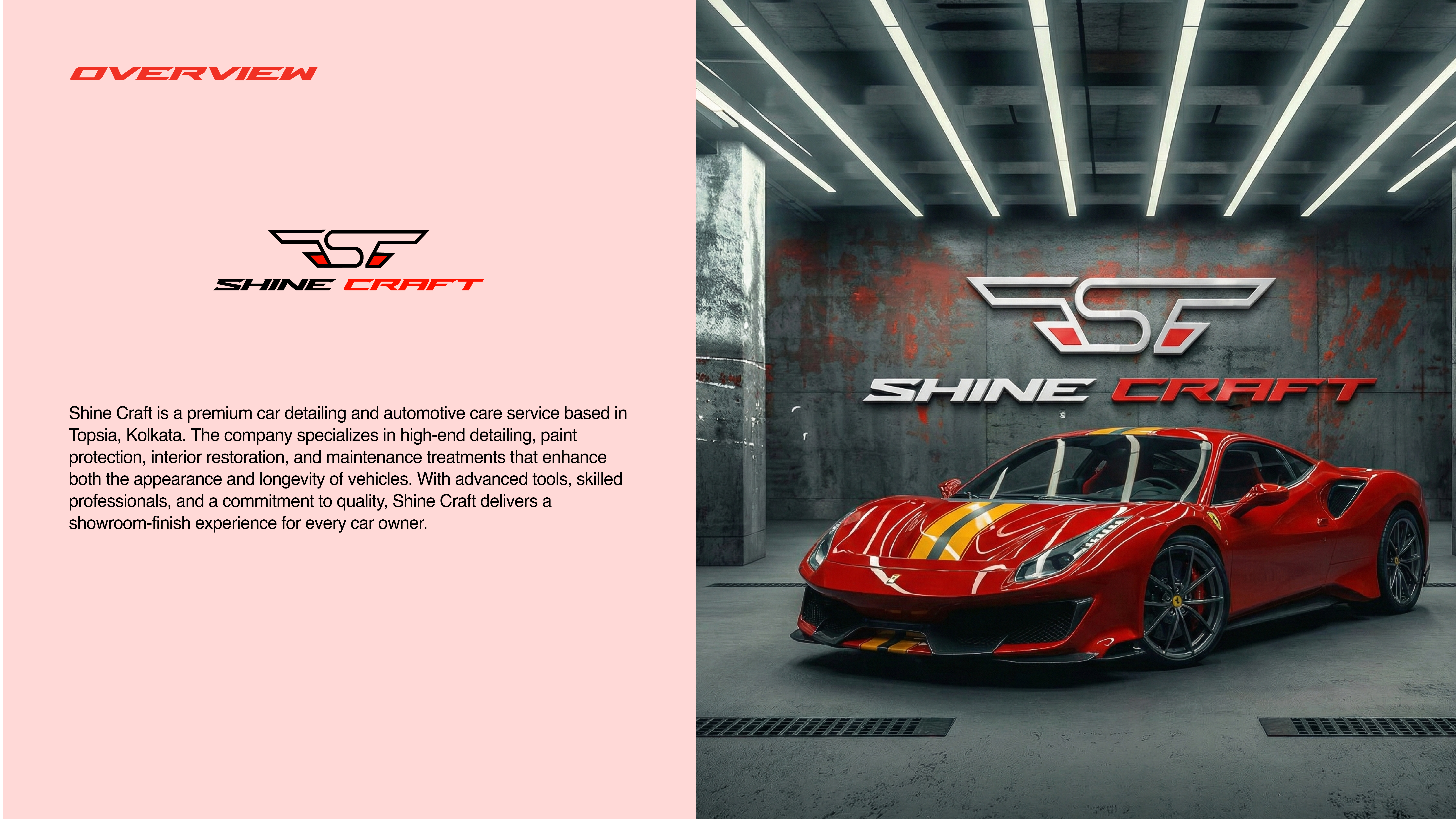Shine Craft is a growing car detailing and service brand aiming to deliver high-quality automotive care in a competitive market. However, their previous brand identity lacked the premium feel needed to attract higher-end customers and stand out among professional detailers. To elevate their presence, Shine Craft required a refined and modern brand identity that reflects luxury, expertise, and the superior quality of their detailing services.